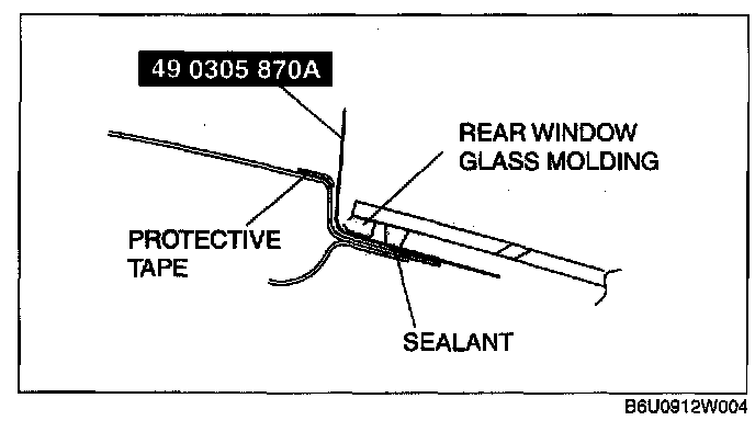 NOTE: Before removing the rear window glass from the body, mark the position of the glass by affixing tape to the glass and body panel.