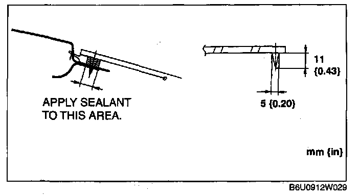 2. If the sealant has come off completely in any one place, apply some primer after degreasing, and allow it approximately 30 minutes to dry. Then put on new sealant to create a 2 mm {0.08 in} layer.