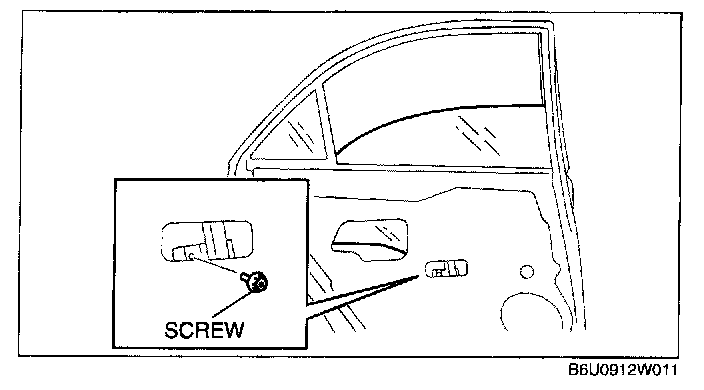 7. Lift the rear door glass to the position where the rear door glass installation screw is visible.