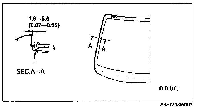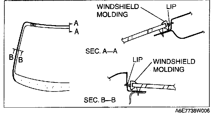 NOTE: Before removing the windshield from the body, mark the position of the windshield by affixing tape to the windshield and body panel.