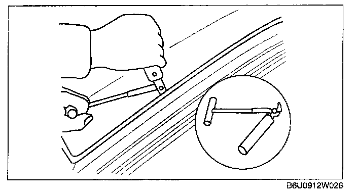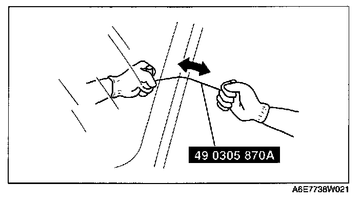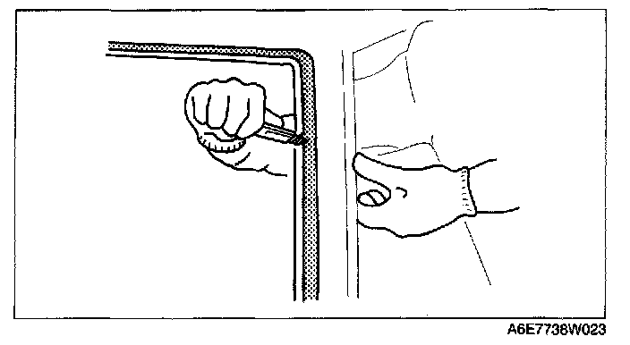 NOTE: For the areas of the sealant that are difficult to cut, use the SST (piano wire) and follow the procedure under "Reusing Windshield."