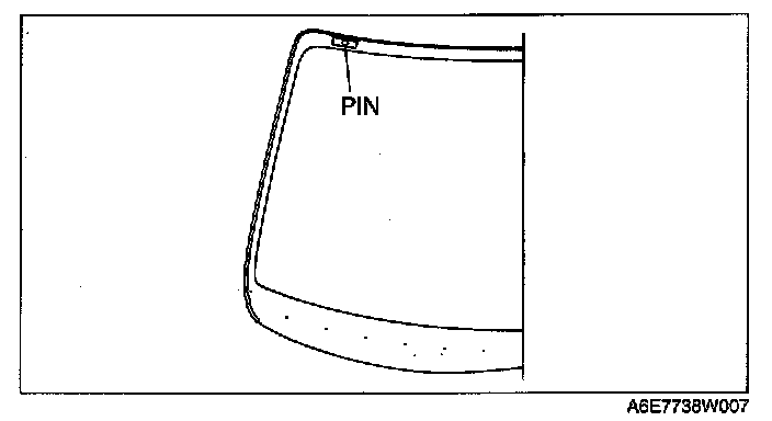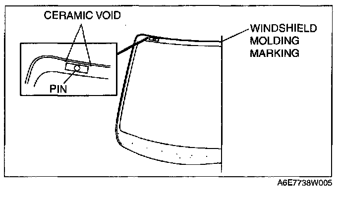 4. If installing reused glass, install pins at the ceramic void on the upper part of the windshield.