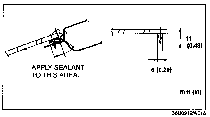 2. If the sealant has come off completely in any one place, apply some primer after degreasing, and allow it approximately 30 minutes to dry. Then put on new sealant to create a 2 mm {0.08 in} layer.