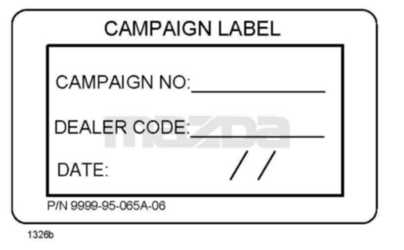 E. CAMPAIGN LABEL INSTALLATION1. Fill out a blue "Campaign Label" (9999-95-065A-06) with Campaign No: "5709J", your dealer code, today's date.