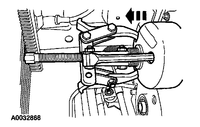 8. Using a three-jaw puller, remove the fan drive pulley.
