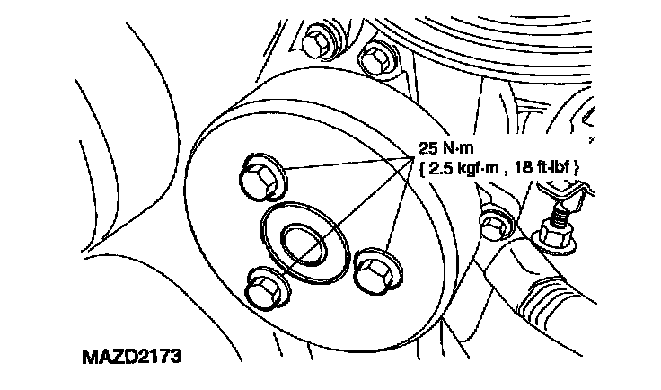 ^ Tighten the 10 mm bolts to 25 Nm {2.5 kgf-cm, 18 lbs.}.