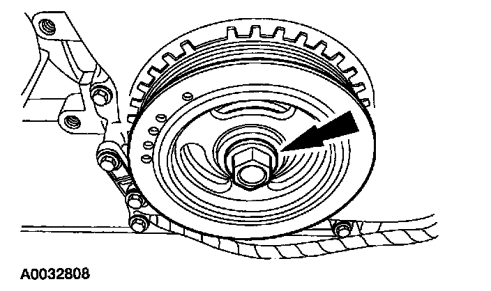 9. Install the crankshaft pulley and hand-tighten the bolt.