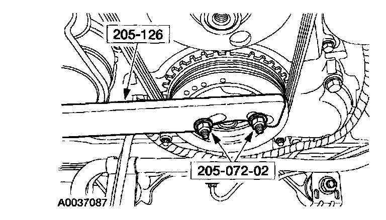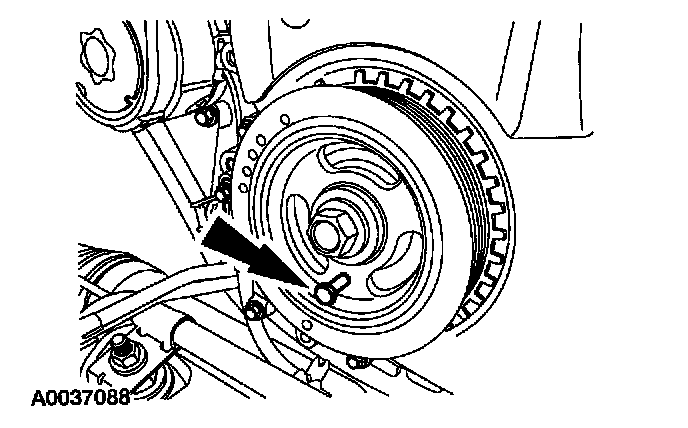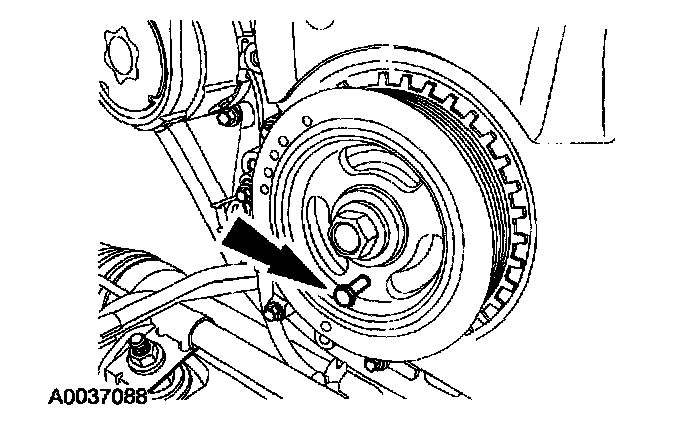 10. Install a M6 x 1.0 x 2.25 bolt (Mazda part # 1F20-12428) in the crankshaft pulley.
