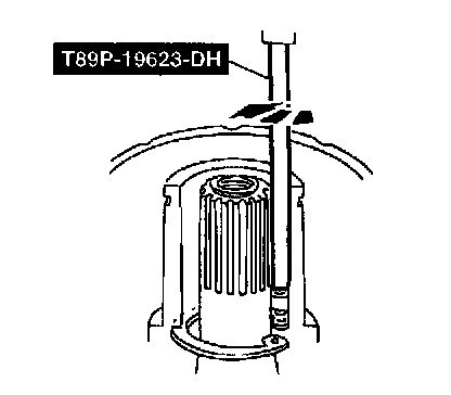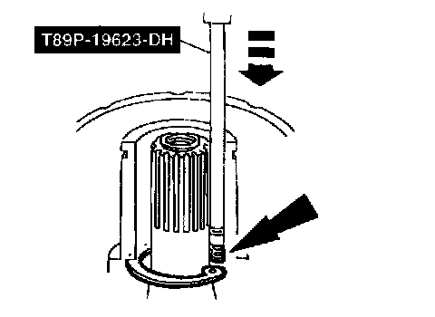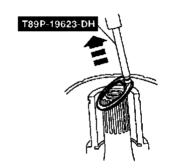 4. Insert the tip of Snap Ring Remover 412-063 (T89P-19623-DH) or equivalent into one of the snap ring eyes.