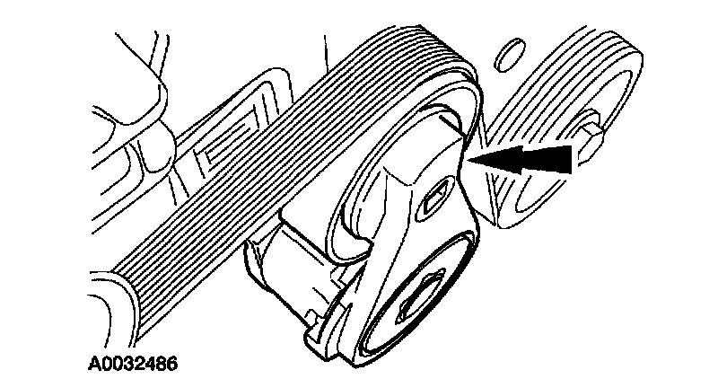 DRIVE BELT REMOVAL / INSTALLATION-2.3L1. Rotate the belt tensioner counterclockwise and remove the drive belt.