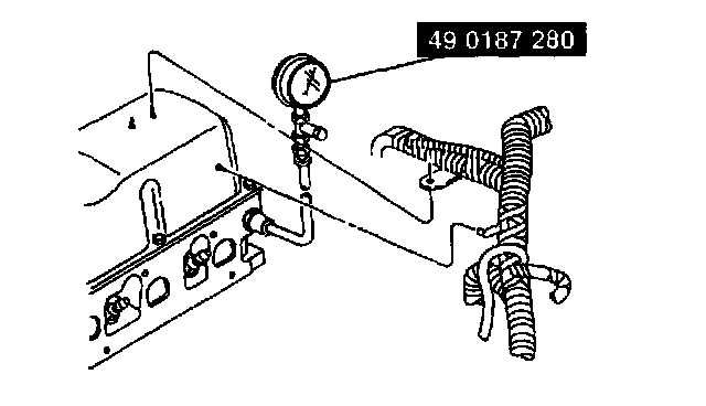 4. If pressure is not within specification (40-60 psi, 276-413 kPa, 2.8-4.2 kgf/cm2), see ENGINE IGNITION SPECIFICATIONS for further diagnosis.