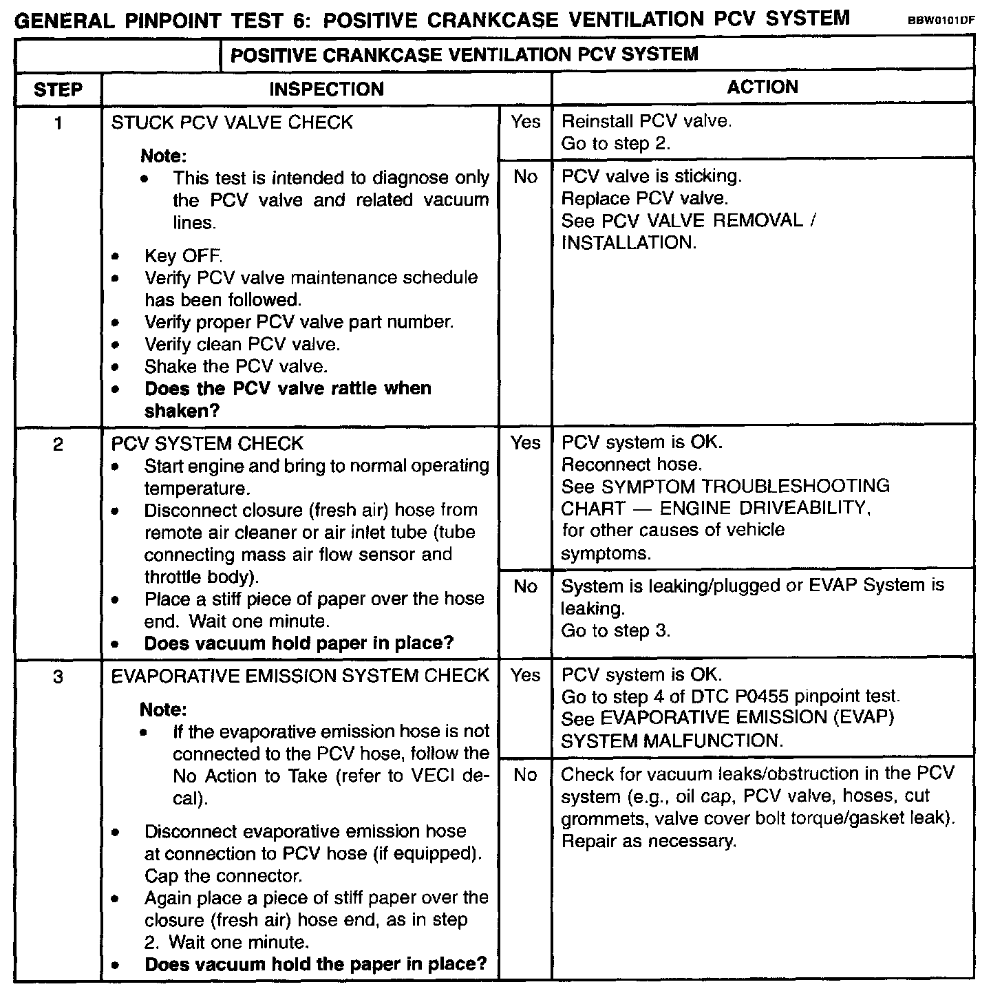 Test 6: Positive Crankcase Ventilation (PCV) System