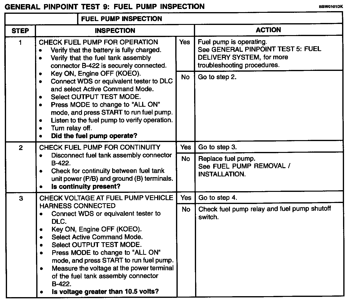 Test 9: Fuel Pump Inspection