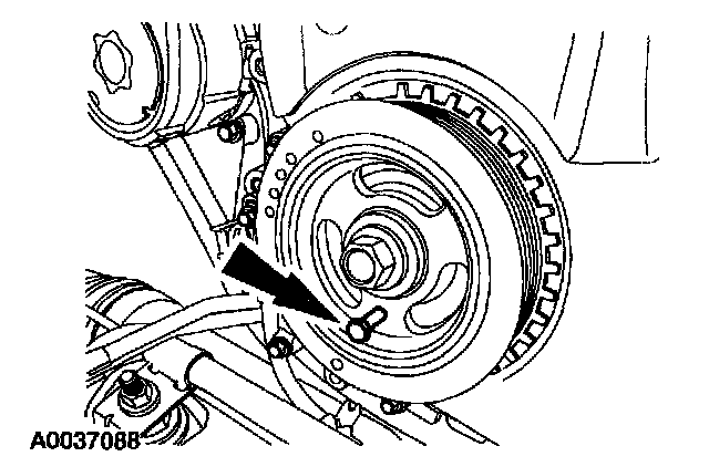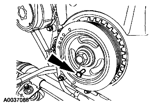 5. Install the special tool and turn the crankshaft pulley bolt to position the number one cylinder at top dead center.