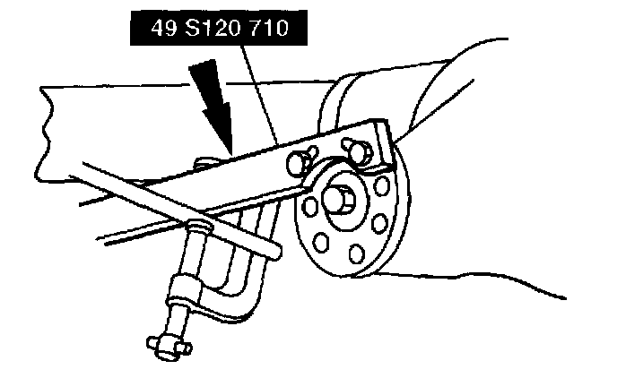 (1) Clamp a rigid bar or pipe to the tool. Clamp the other end of the bar or pipe to the frame or a body member in order to prevent movement of the rear companion flange.