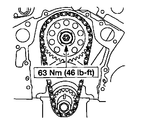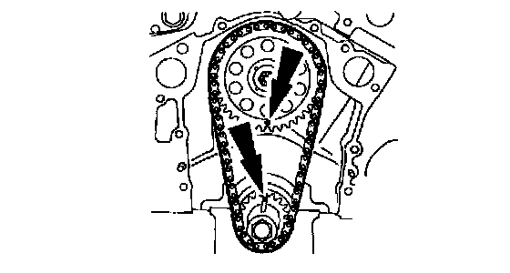 2. Install the timing chain, camshaft sprocket and crankshaft sprocket as an assembly.