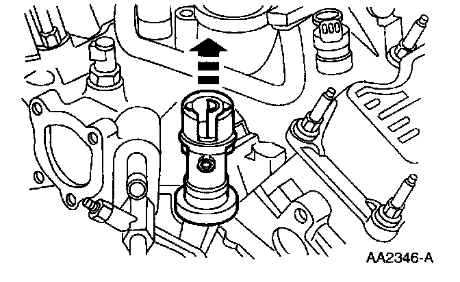 NOTE: The oil pump driveshaft might come out with the camshaft synchronizer. If so, retrieve the oil pump driveshaft before proceeding.