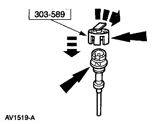 1. Install the special tool on the camshaft synchronizer by rotating the tool until it engages the notch in the camshaft synchronizer housing and the armature.