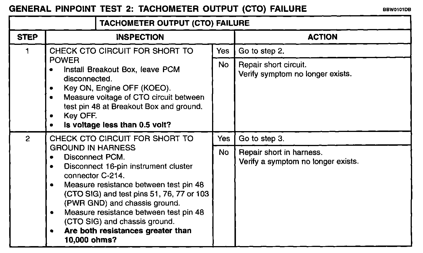 Test 2: Tachometer Output (CTO) Failure