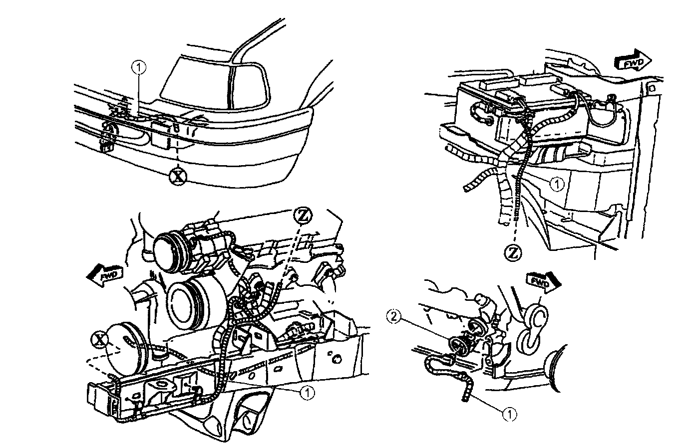 Use door trim panel removing tool or equivalent to remove wiring from battery tray, inner fender, engine mount brackets and cylinder block.