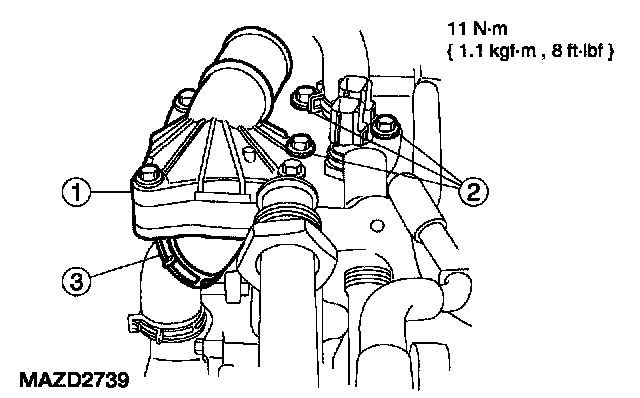 8. Install the thermostat housing.