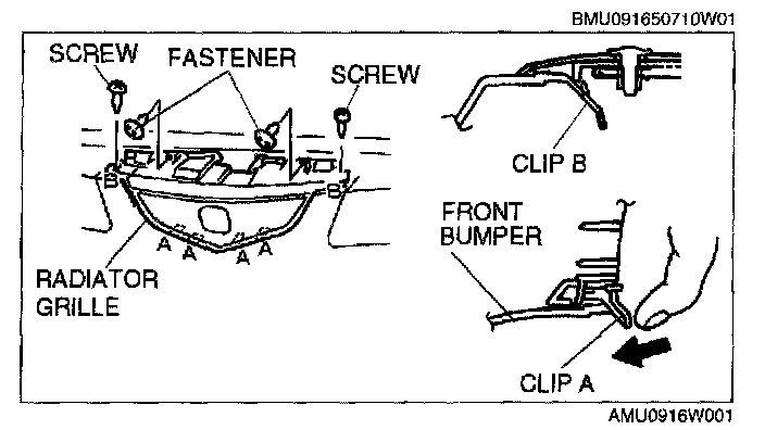 Pull the radiator grille forward, then disengage clips A from the front