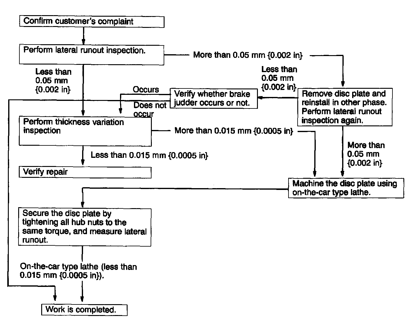^ If the result is not within specification, machine the disc plate using a lathe.