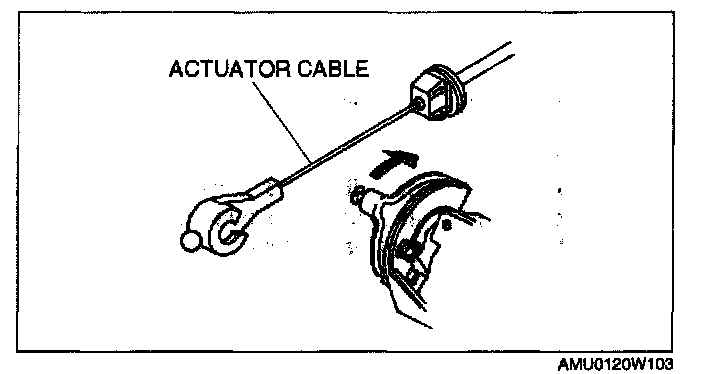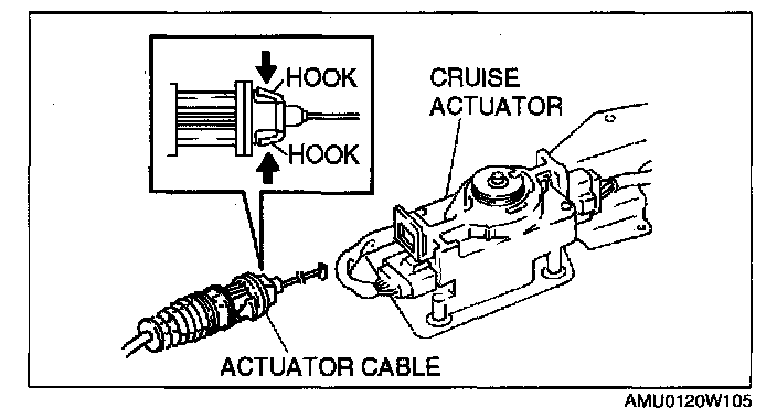 6. Remove the end fitting of the actuator cable from the cruise actuator.
