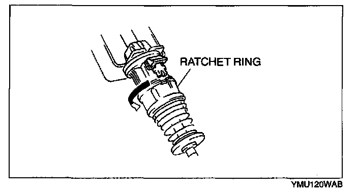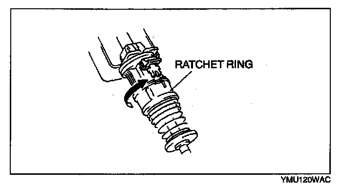 9. Turn the ratchet ring in the direction shown by the arrow to lock it.
