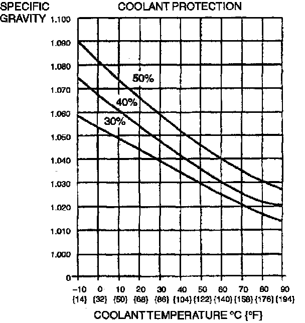 1. Measure the coolant temperature and specific gravity with a thermometer and a hydrometer.