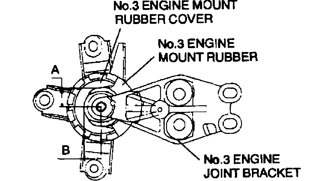 Caution: If the clearances A and B of the No. 3 engine joint bracket are out of specifications, engine vibration and noise can increase. Make sure that the clearances are within the specifications.