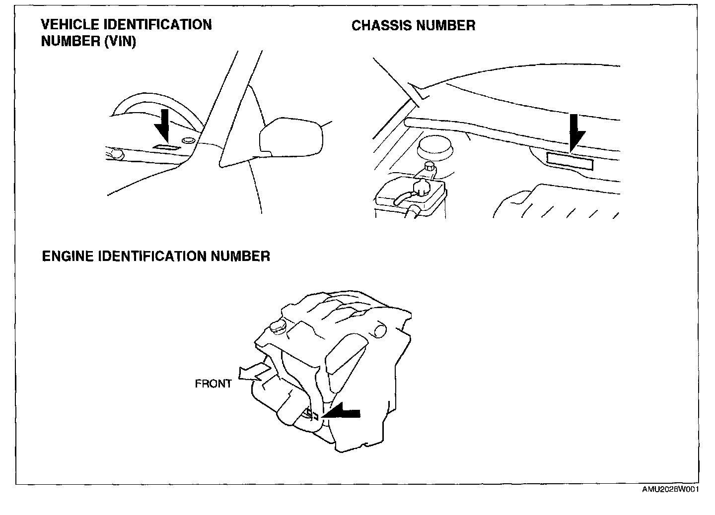 Vehicle Identification Number (VIN), Chasis Number, Engine Identification Number: