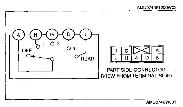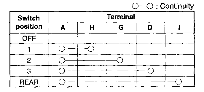 Inspect for continuity between the rear main fan switch terminals using an ohmmeter.