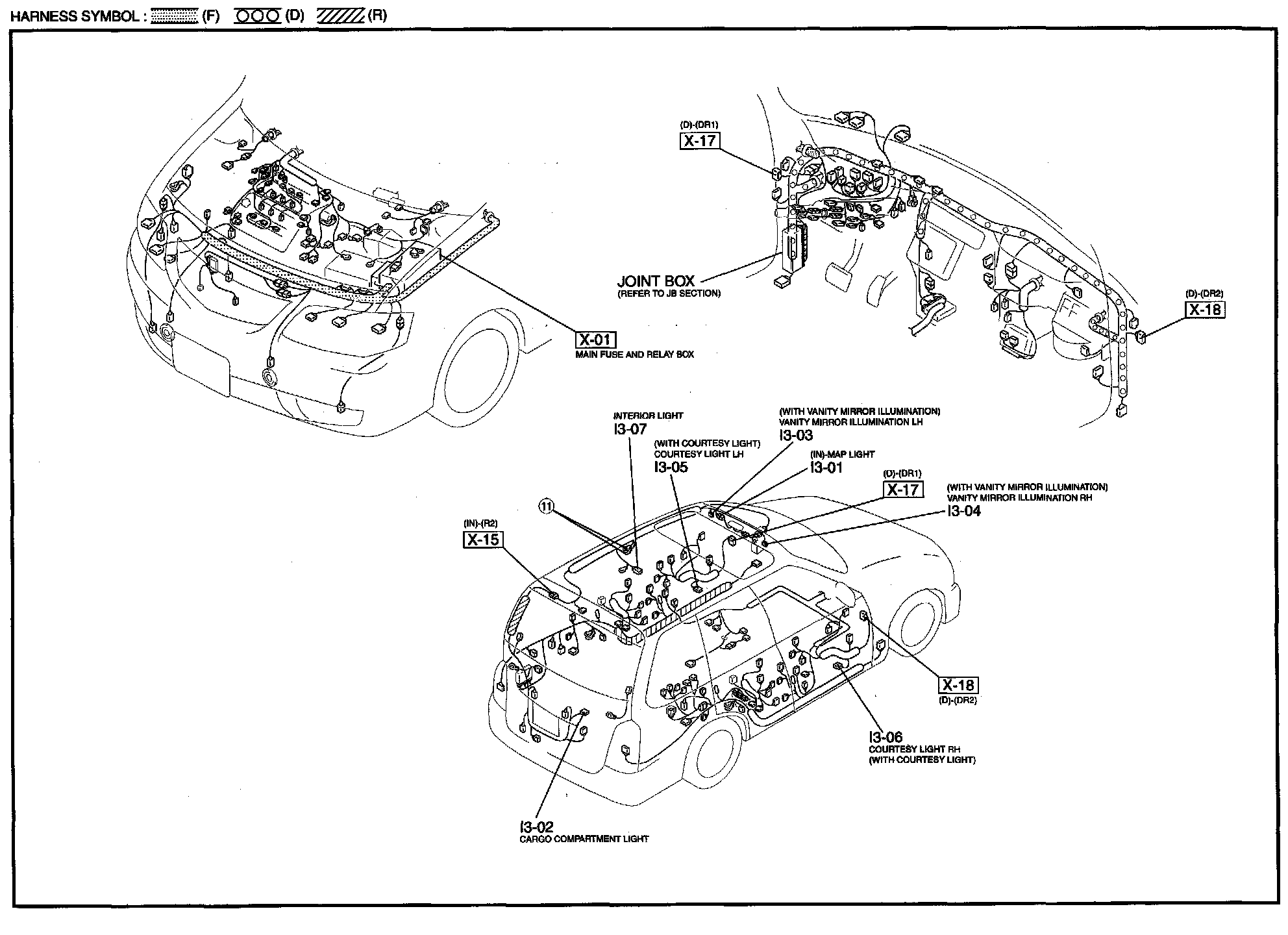 I-3 - Cargo Compartment Light / Courtesy Light / Interior Light / Map Light / Vanity Mirror Illumination Harness/Connector Symbols: