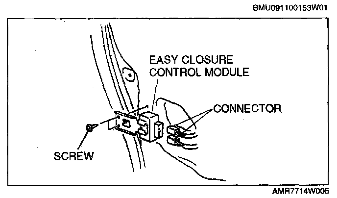 EASY CLOSURE CONTROL MODULE REMOVAL/INSTALLATION1. Disconnect the negative battery cable.