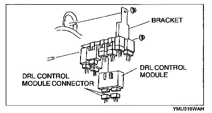 DRL CONTROL MODULE REMOVAL/INSTALLATIONNOTE: Because the lock section of the control module is damaged easily, do not remove the control module from the bracket unless replacement is necessary. Always perform an inspection of the DRL control module before removal.