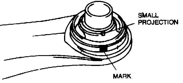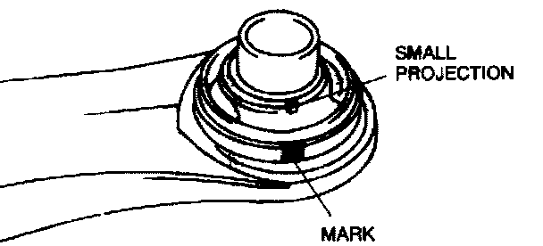 1. Mark the lower arm as shown in the figure by aligning with the small projection of the lower arm bushing (rear) for proper installation.