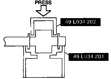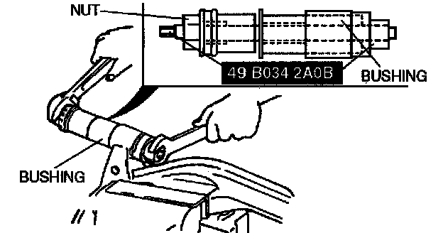 3. Press the new lower arm bushing using the SST (49 L034 202).
