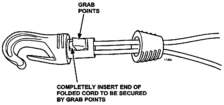 4. Push the cord into the hook completely so the cord bottoms out inside the hook cavity.