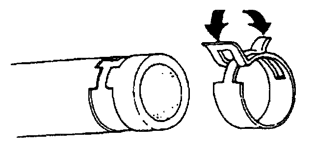 ^ When reinstalling, position the hose clamp in the original location on the hose and squeeze the clamp lightly with large pliers to ensure a good fit.