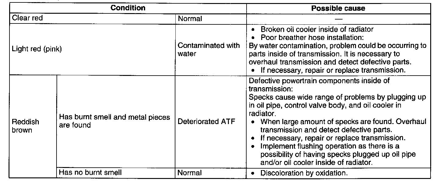 ATF Condition Inspection1. One way of determining whether the transmission should be disassembled is by noting: