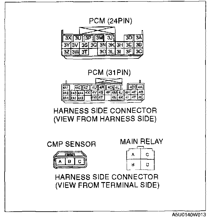 - GND circuit (CMP sensor connector terminal C and PGM connector terminal 4A)