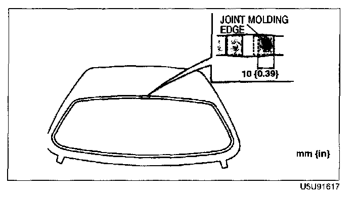 - If the molding is too long, cut the excess molding 10 mm {0.39 in} inside the molding joint edge.