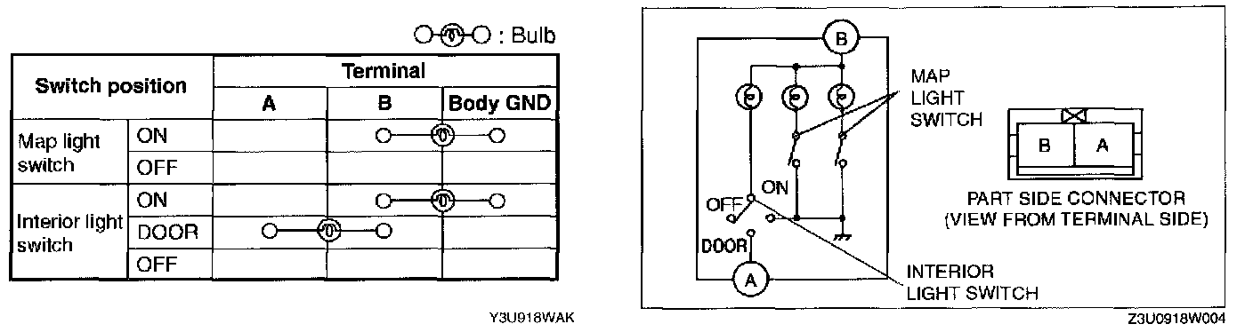 terminals using an ohmmeter. If not as specified, replace the interior and map light.