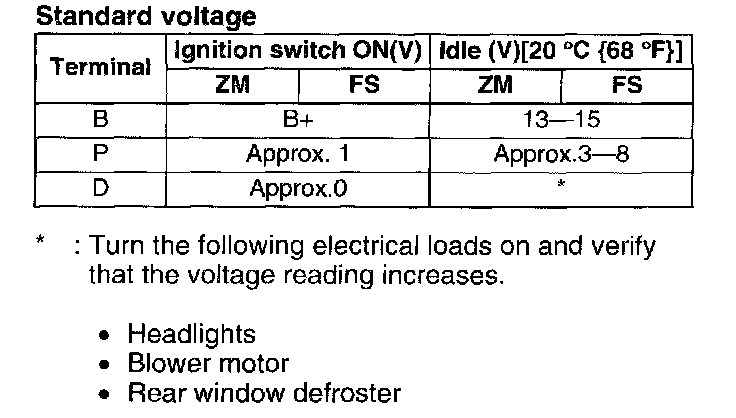 3. Turn the ignition switch to ON and verify that the generator warning light comes on.