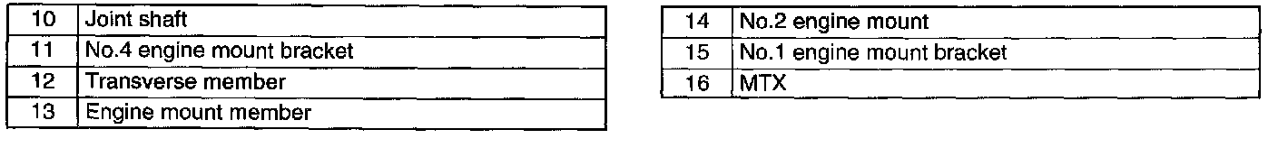 1. Verify that the engine mount rubbers are installed as shown.