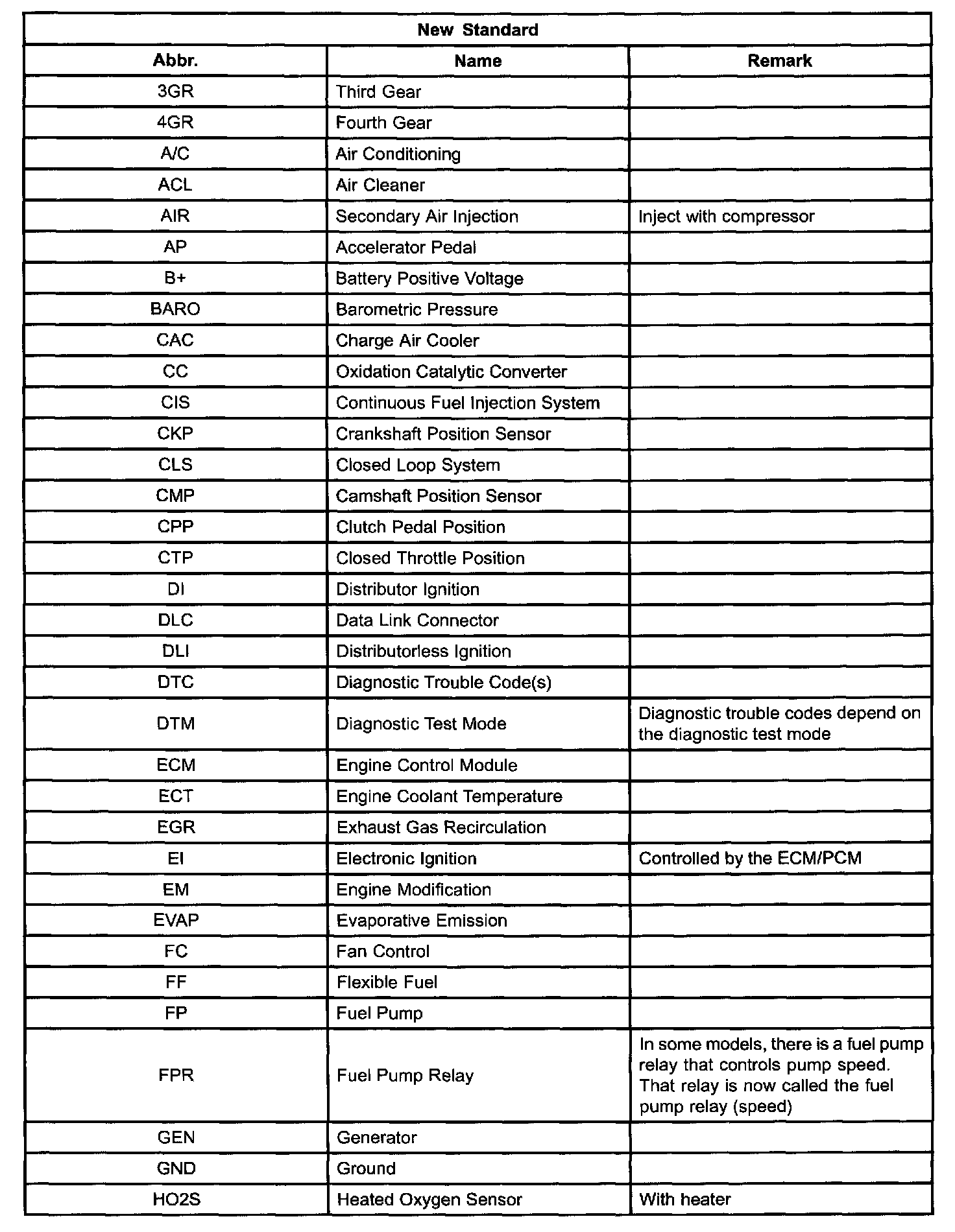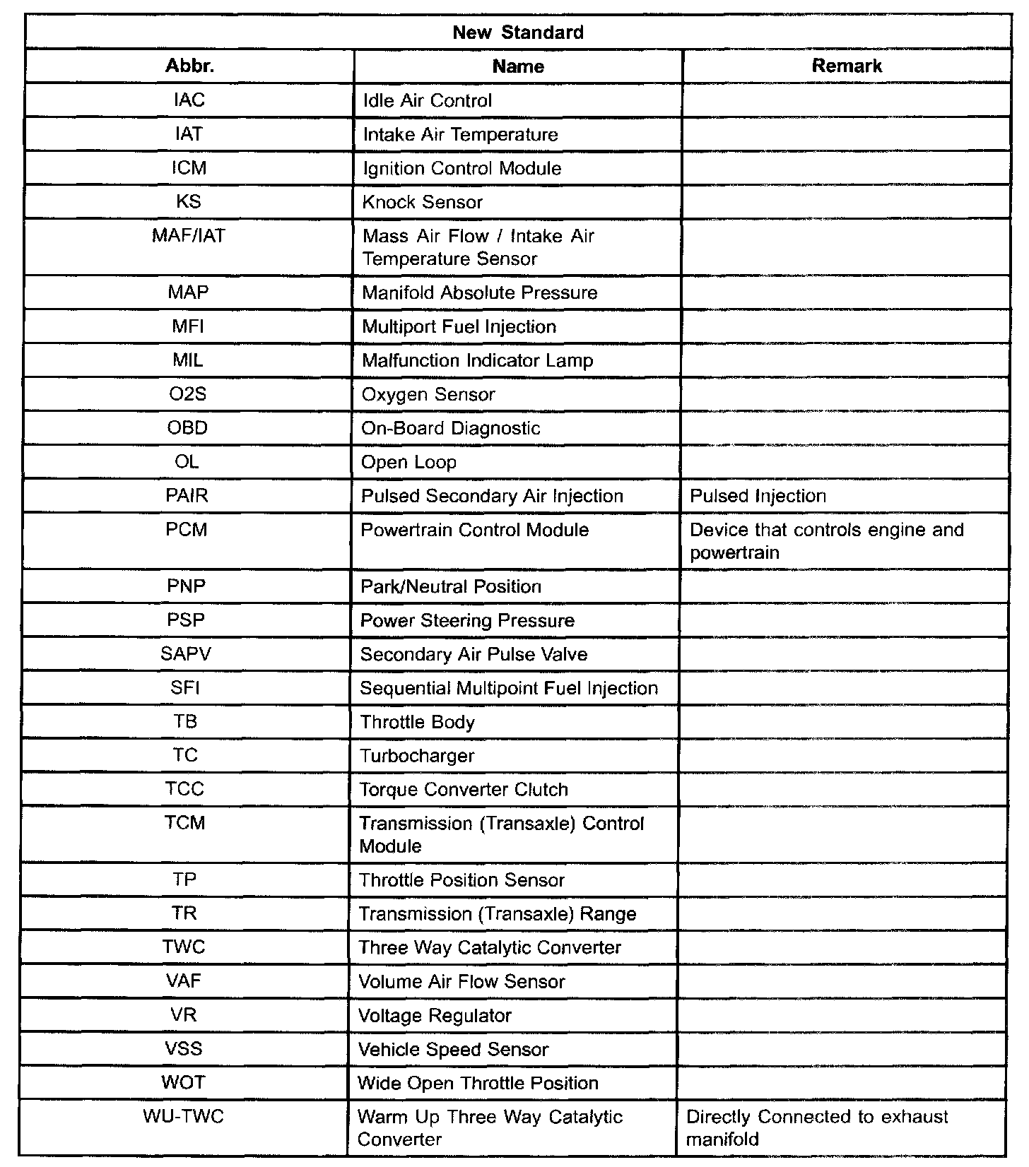 - In accordance with new regulations, SAE (Society of Automotive Engineers) standard names and abbreviations are now used in this manual The table above lists the names and abbreviations that have been used in Mazda manuals up to now and their SAE equivalents.
