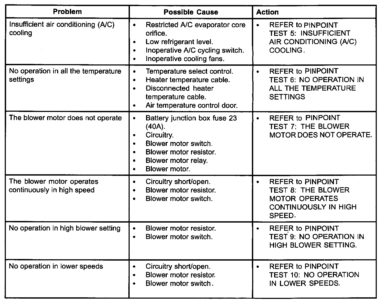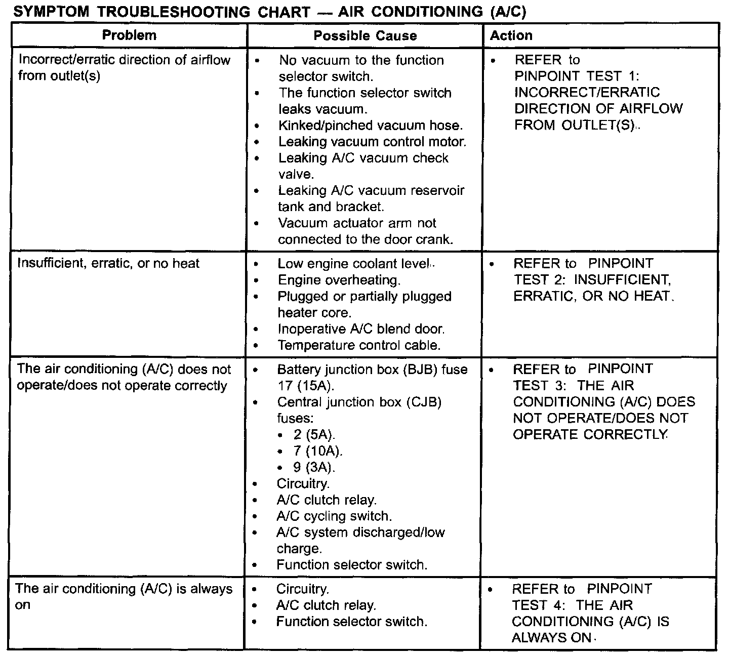 Symptom Troubleshooting Chart - Air Conditioning (A/C) Part 2: