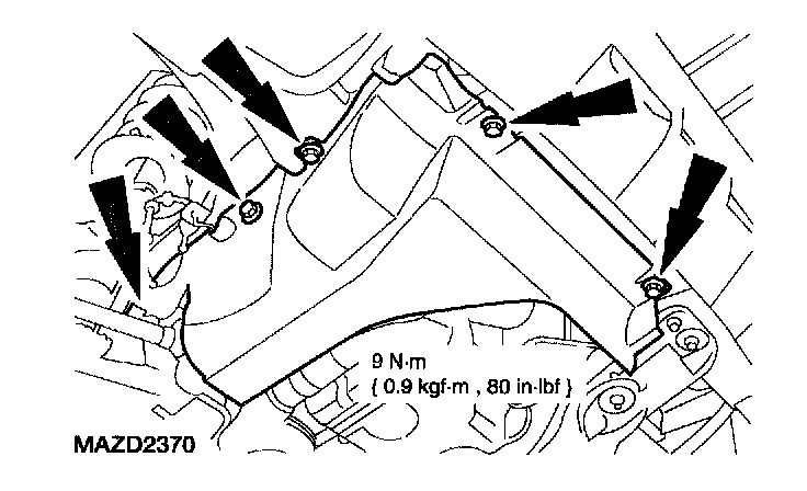 2. Remove the bolts and the right front lower splash shield.