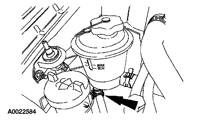 2. Disconnect the power steering return hose. Plug the reservoir.